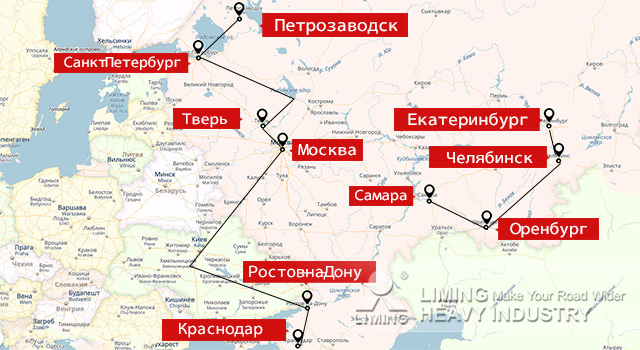 Маршрут: Москва --- Тверь --- Санкт Петербург --- Петрозаводск --- Ростов-на-Дону --- Краснодар --- Самара --- Оренбург --- Челябинск --- Екатеринбург